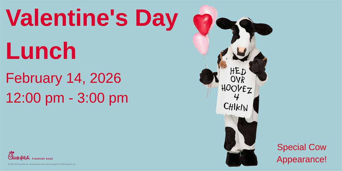 Celebrate Valentine’s Day at Chick-fil-A with a special dining experience! Guests will enjoy a fun, elevated atmosphere complete with thoughtful details and a visit from the Chick-fil-A Cow! Whether you’re dining with a significant other, friends, or family, it’s the perfect setting for good food and great company. One ticket = one table.