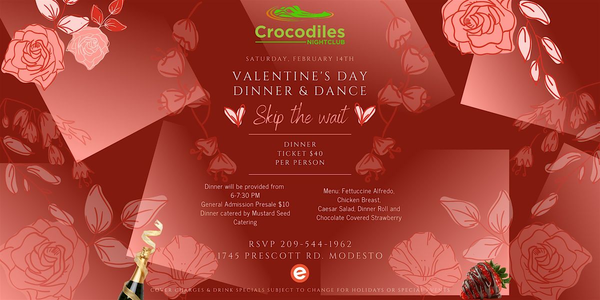 Celebrate Valentine’s Day all in one place at Crocodiles Nightclub on February 14, 2026 ❤️. Enjoy an early dinner followed by a night of music and dancing—no need to drive around or change locations.