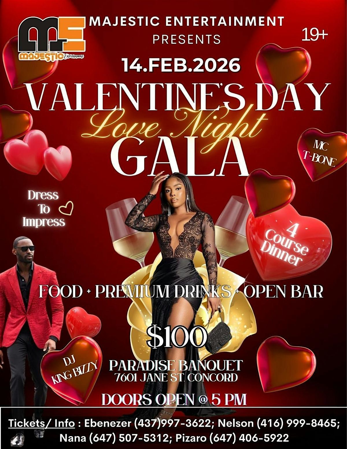 Get ready for an unforgettable evening filled with romance and fun at our in-person Love Night Gala! Whether you're celebrating with a special someone or just want to soak up the love vibes, this night has it all. 4 course meal, open premium bar, Gifts and Dress to impress atmosphere, enjoy great company, and make memories that’ll last a lifetime. Don’t miss out on the magic!