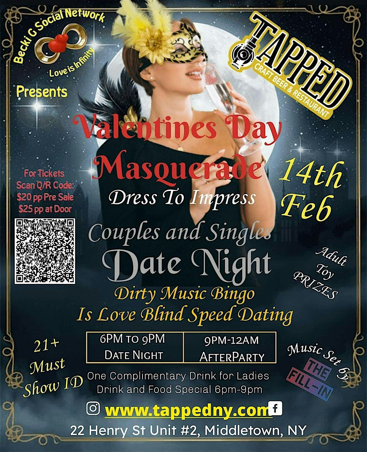 Get ready for an unforgettable night at our Valentines Day Masquerade Party! Put on your coolest mask and come mingle in person with great vibes, fun music, and lots of surprises. Whether you’re flying solo or bringing your crush, this is the perfect chance to celebrate love, mystery, and a night full of laughs. Don’t miss out—let’s make this Valentines Day one to remember!