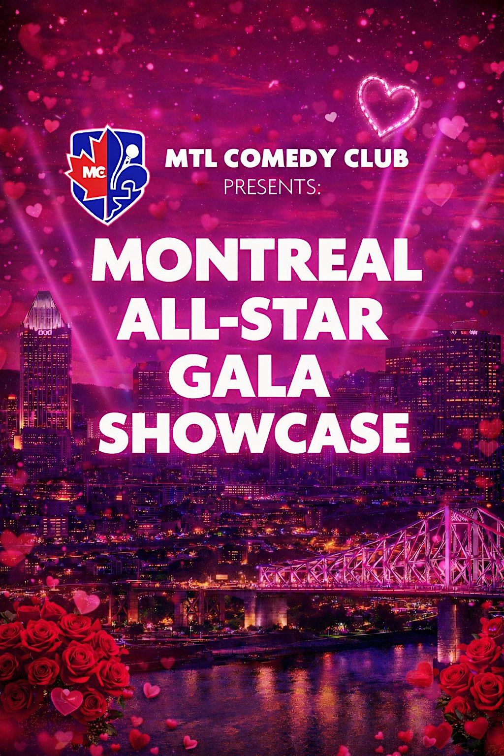 Join us for an unforgettable night of stand-up comedy in Montreal at our Valentine's Day Comedy Show on Saturday, February 14th, at 7 PM. Whether you're on a romantic date, out with friends, or just in the mood for laughter, this show is sure to deliver big laughs and good vibes!