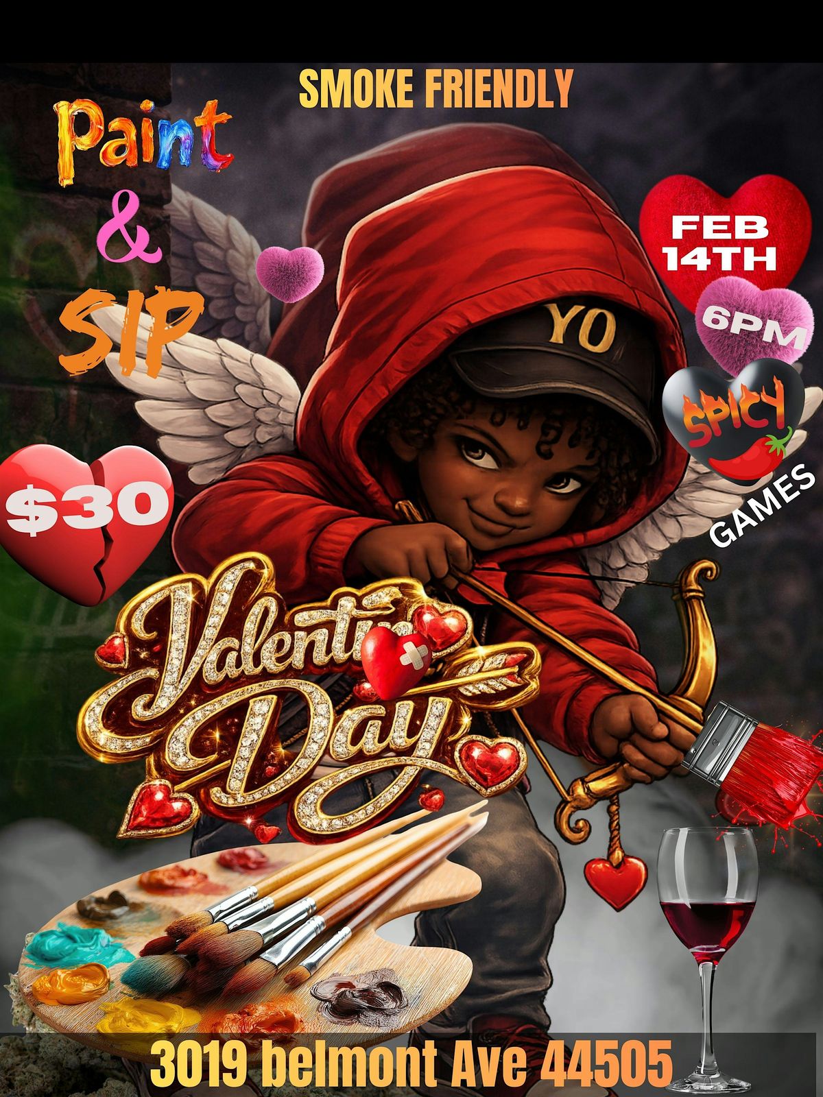 Get ready for a fun in-person night filled with creativity and good vibes! Join us for our Valentine's Day Paint n Sip where you can unleash your inner artist while enjoying your favorite drinks. Whether you're flying solo or bringing a special someone, it's the perfect way to celebrate love and friendship. No experience needed—just bring your smile and a splash of imagination!