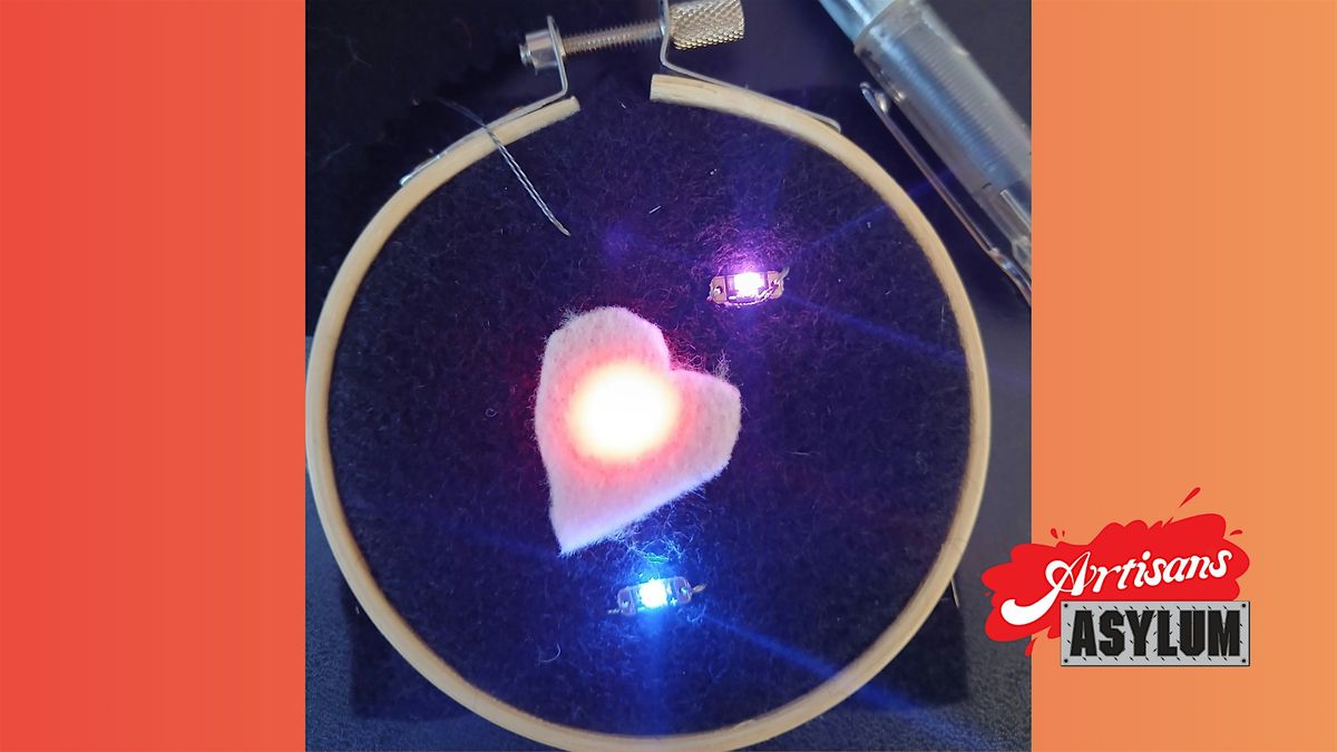 An introduction to the process of making wearable electronics. Learn how to combine sewing and lights to make a fabric patch that can be worn or displayed, or gifted to a Valentine (just sayin).