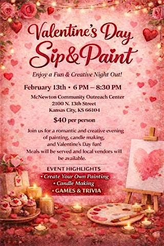 Join us for a romantic & creative evening of painting, candle making & Valentine's Day Fun! Meals provided and local vendors will be onsite