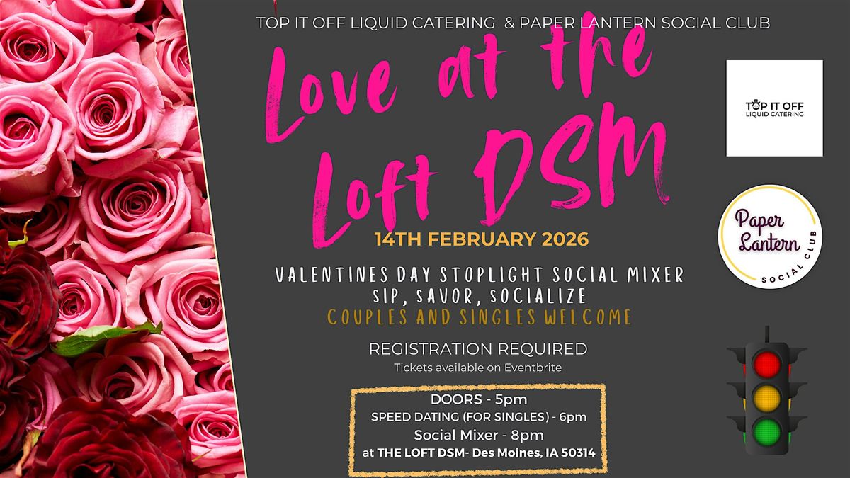 Join Paper Lantern Social Club & Top It Off Liquid Catering for a Stoplight Social Mixer — a playful Valentine’s-season gathering designed to spark real connections.