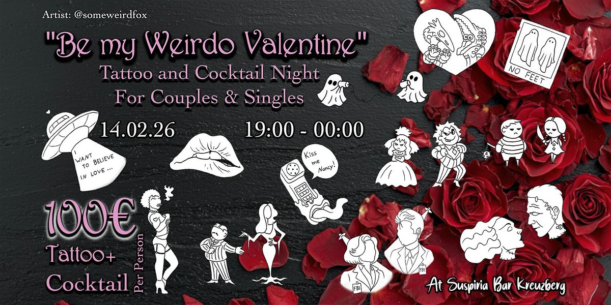 Please (if possible) send me a DM on Instagram to @someweirdfox or @suspiria_bar_kreuzberg to sign up and be put on the priority list for the tattooing. That way we can ensure that nobody leaves the bar uninked 🫀
