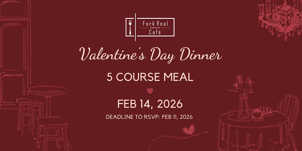 Join Fork Real Community Café for a Valentine's Dinner made with love on Saturday, February 14, 2026.