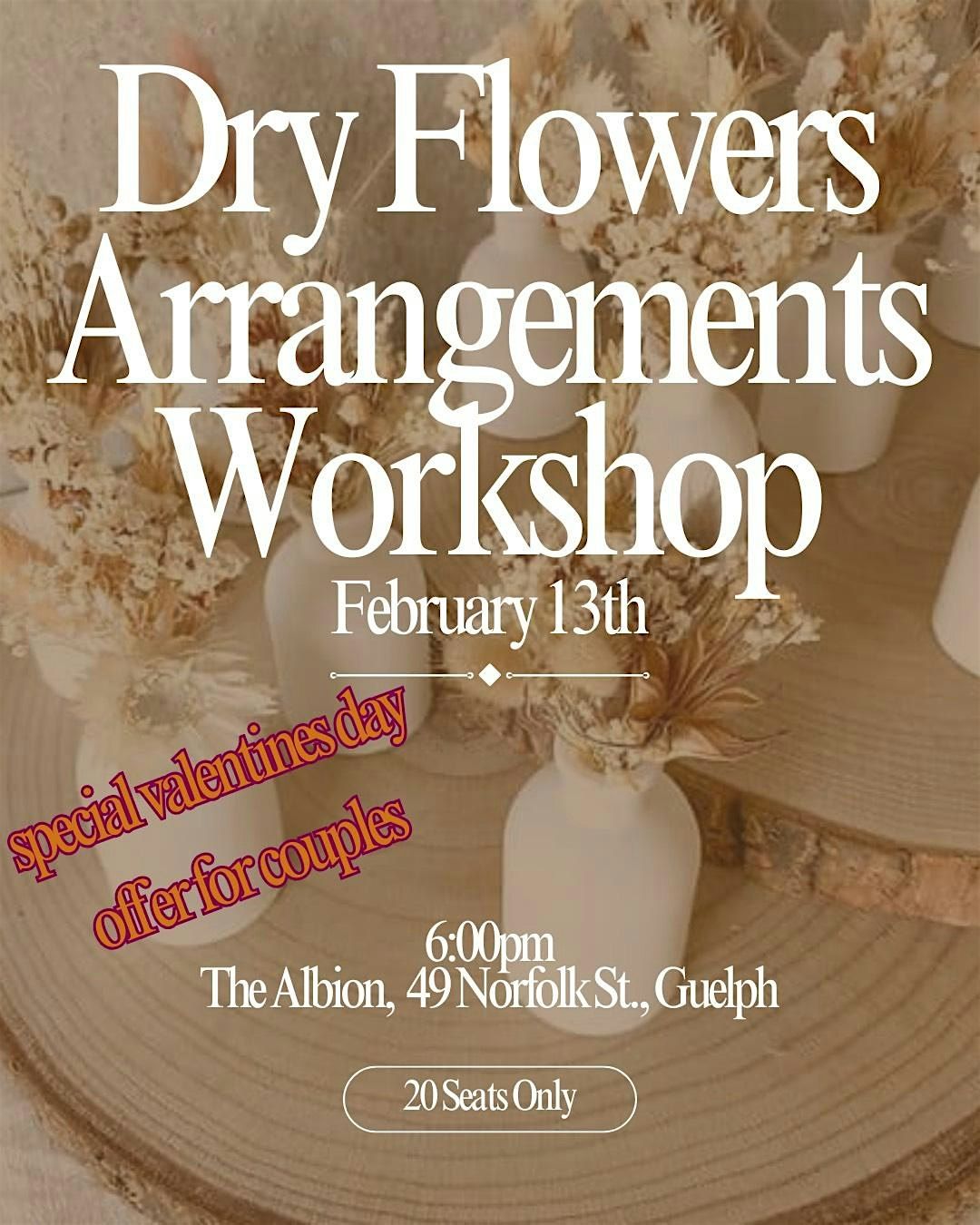 Celebrate Valentine’s Day with a creative and cozy evening out! Join us for a hands-on dried flower arrangement workshop where you’ll design your own beautiful, long-lasting floral piece—perfect as a gift or keepsake.