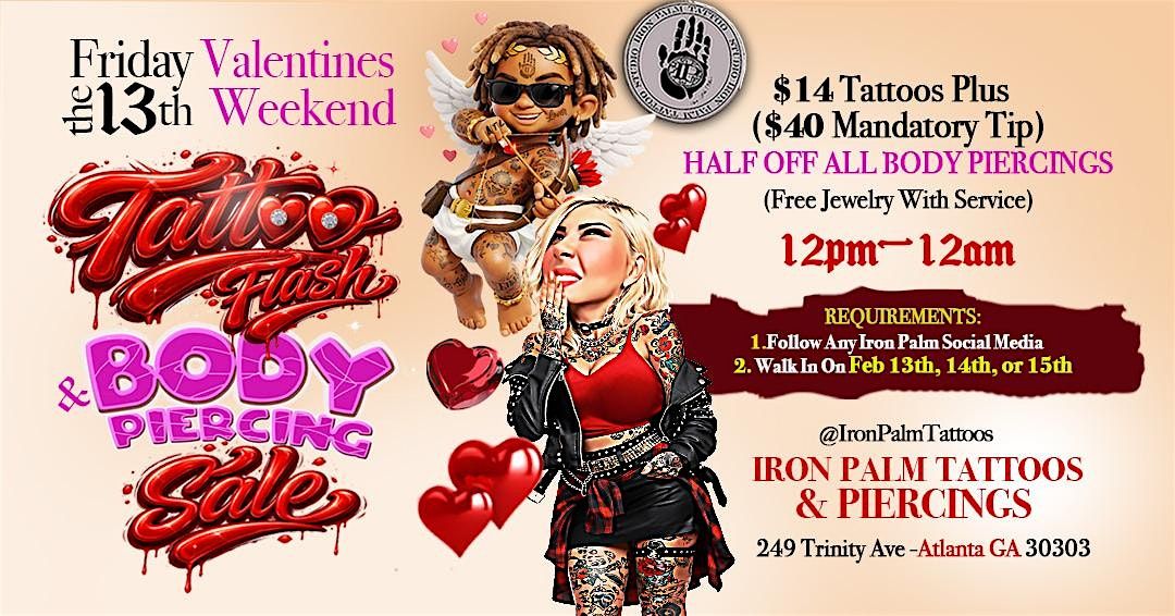 Friday The 13th Valentines Weekend : $14 Flash Tattoo & Body Piercing Sale!