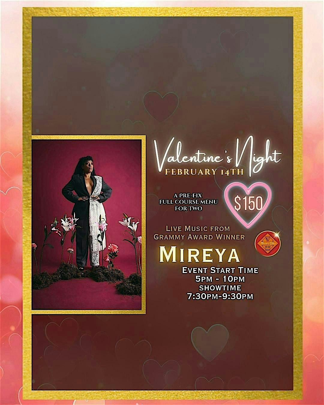 Celebrate Valentine’s Night with a live, unforgettable evening of food, music, and connection. Enjoy a pre-fix full-course menu for two plus your choice of a bottle of wine, a pitcher of sangria, a cubetazo, or a non-alcoholic fruit punch — all for $150. The night features live music by Grammy Award winner Mireya and her fellow musicians, setting the perfect vibe for romance and fun. Ideal for couples, groups of friends, and Galentine’s celebrations alike. 💕🎶