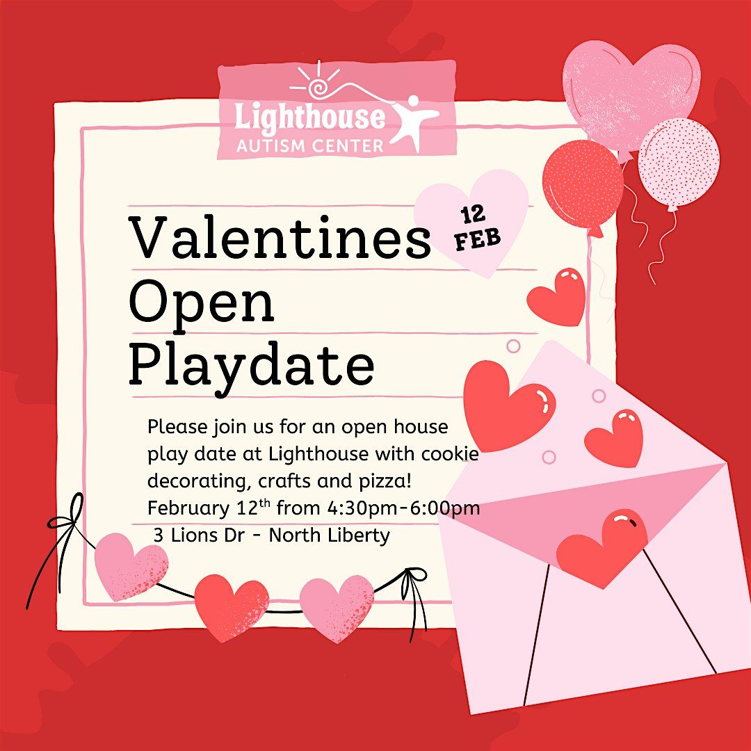 Join us for an open house playdate at Lighthouse Autism Center for cookie decorating, crafts, and pizza! February 12, 2026 from 4:30 to 6pm.