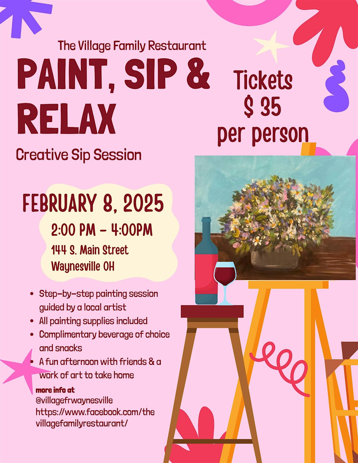 Grab your favorite person and join us for a fun in-person evening of painting, sipping, and laughter! No art skills needed—just bring your creativity and good vibes. It's the perfect way to celebrate Valentine's Day with some colorful memories. We'll provide all the supplies and the tasty drinks. Can't wait to see you there and get those brushes moving! Bring your Valentine or Galentine, we all deserve to feel the LOVE!