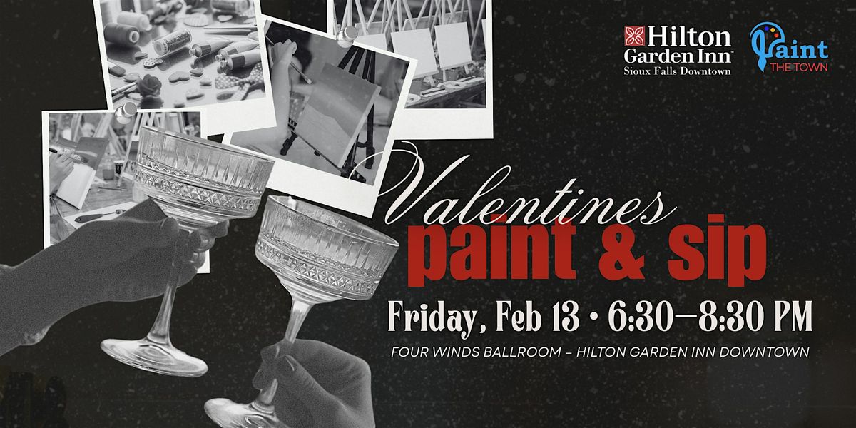 Get ready for a fun in-person night out! Join us at the Hilton Garden Inn Downtown Sioux Falls for a Valentines Paint & Sip experience. Whether you're bringing your sweetheart or friends, enjoy a relaxed vibe, some great drinks, and unleash your creativity on canvas. No pressure—just good times and good company! Don’t miss this perfect way to celebrate the season of love. Tickets are $50/person or $90/couple and include one complimentary glass of wine or mocktail and light hors d'oeuvres. Hosted in collaboration with Paint The Town.