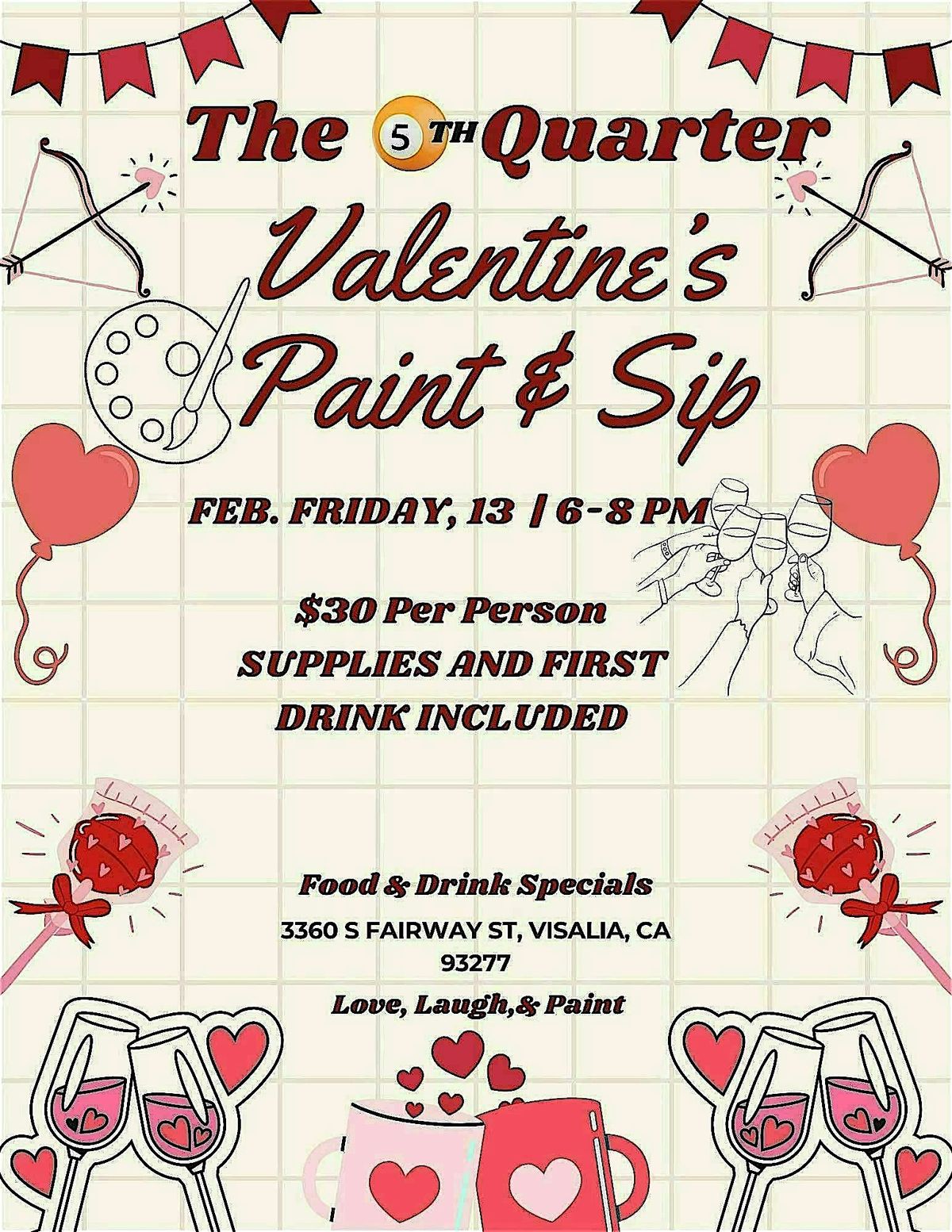 Get ready to sip, paint, and spread the love at our Valentine's Paint & Sip event - it's going to be a masterpiece of a night!About this Event