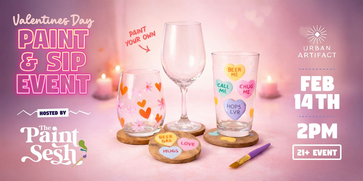 Celebrate Valentine’s Day in Cincinnati with a creative, one-of-a-kind experience! Join The Paint Sesh at Urban Artifact for DYO Valentine’s Glass & Coaster, a special v-day paint and sip where—instead of a canvas—you’ll design your own custom drinkware plus a matching wooden coaster. Romantic, fun, and totally unique, it’s the perfect way to toast Valentine’s Day with creativity and connection.