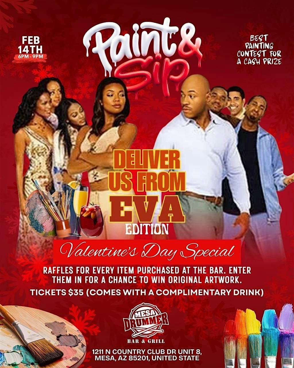 Paint scenes from your fav movies and tv shows! No experience needed! Pre sketched canvases available. Win prizes and order food & Drinks!
