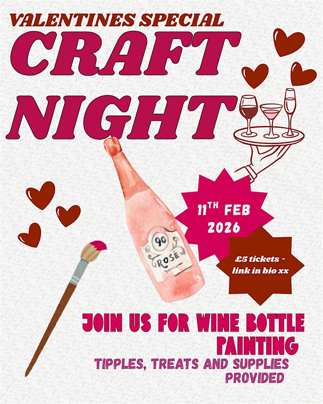 Welcome to the Valentines Special Craft Night at Mood Hove! Get ready for a fun evening filled with creativity and love. Join us on February 11, 2026 at 7:00 PM (Europe/London Timezone) for a night of crafting and celebrating love. Whether you're coming solo or with a special someone, this event is perfect for spreading love and joy. Let's create beautiful crafts together and make memories that will last a lifetime. Don't miss out on this special event!