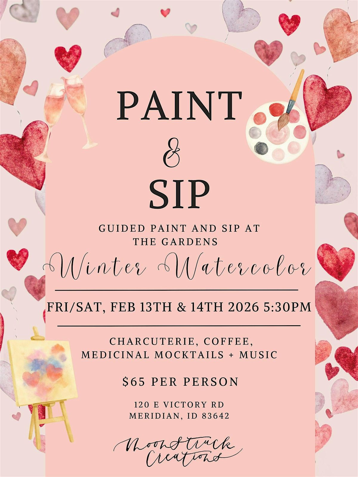 Watercolor Workshops and Paint and Sip events are perfect for family outings, getting together with friends, or a fun way to mix up date night! Moonstruck Creations events can be found all around the Treasure Valley in Boise, Meridian, Garden City, Nampa, Caldwell, Kuna, Eagle, Star, Middleton, Emmet, Avimor, Donnelley, and McCall. Moonstruck Creations events are a safe place to be creative and embrace our own unique expression.