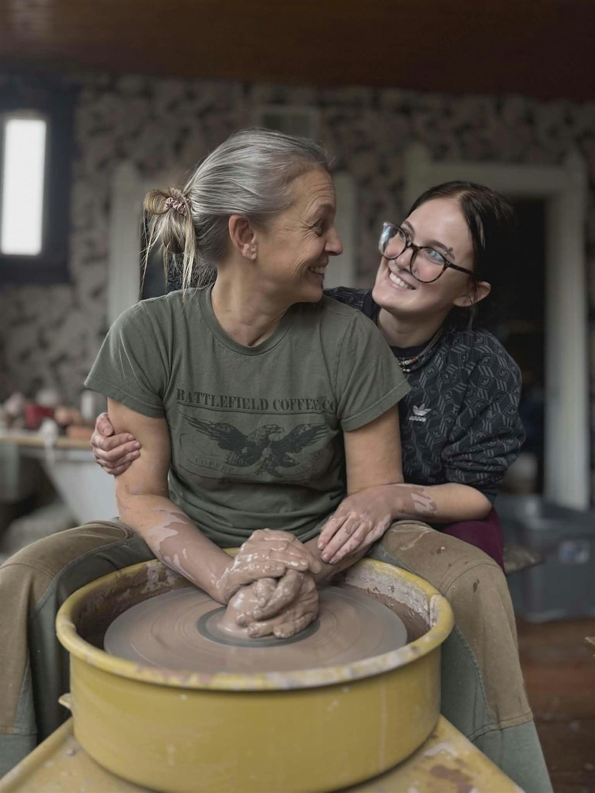 Make this Valentine's Day special with a partner wheel throwing pottery class! You can work your pieces as partners or simply share a wheel. Throw up to four 1lb balls of clay. This class can be done with you life partner, friend, or any loved one. One ticket covers two people. Only three wheels available (6 people total or 3 pairs) for each class so book now!