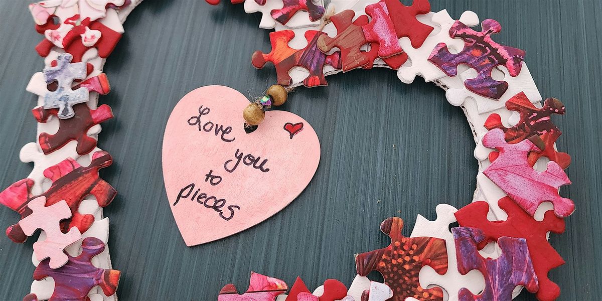 Join us for this step-by-step class for adults to make a Valentine's wreath crafted with upcycled puzzle pieces to give as a gift or to keep for yourself to adorn your door or mantle. Come for the crafting and enjoy the connection with fellow crafters for an enjoyable night out to beat those “February blahs”.
