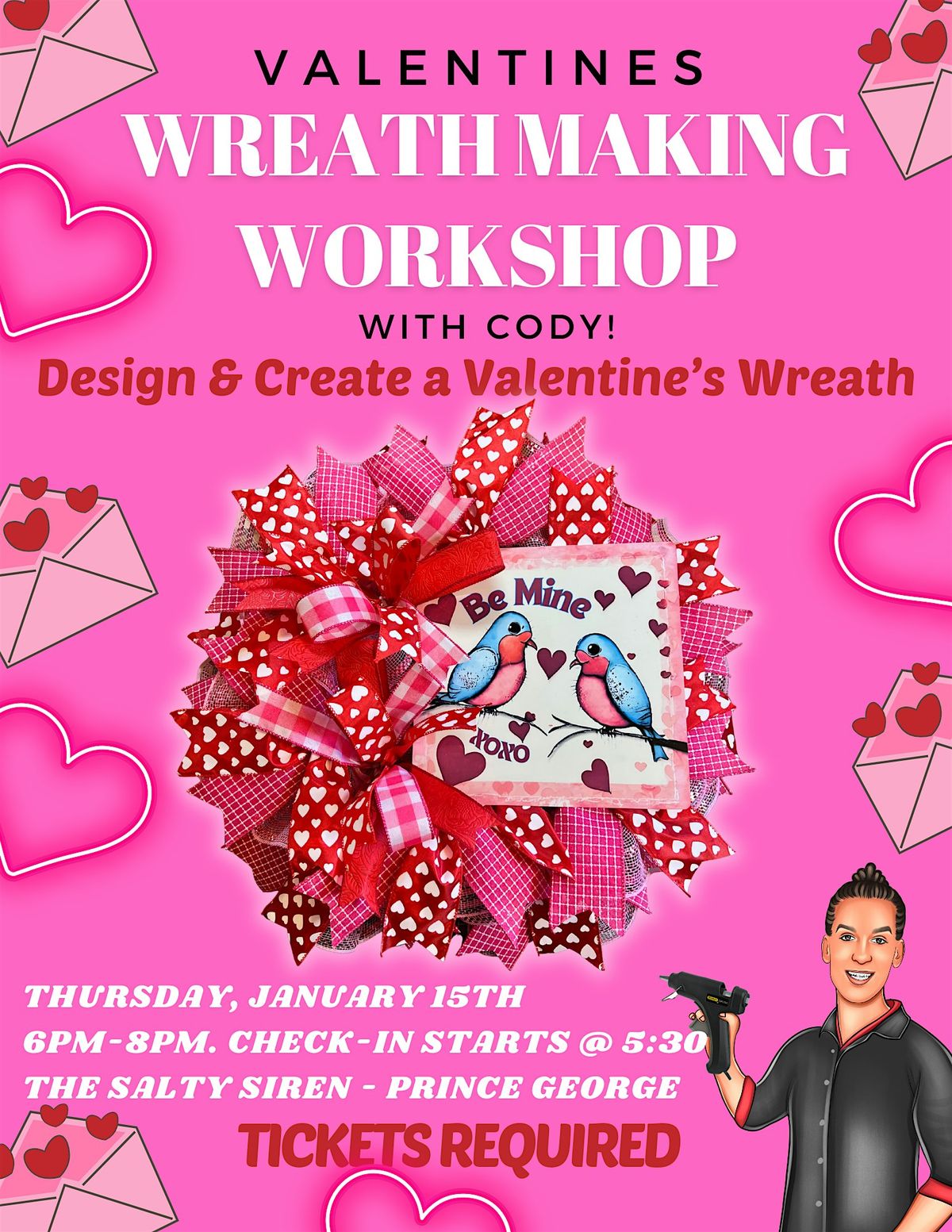 For this class we will be constructing a fabulous mesh wreath (see attached image). All supplies needed to create your wreath and a variety of GIVEAWAYS will be included with your ticket. Upon arrival, you will have the opportunity to select which sign you would like to use for your design from a variety of options.
