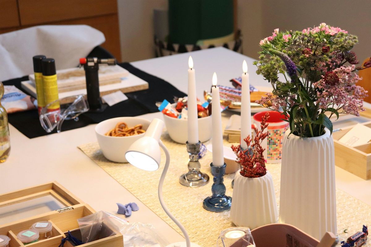 Inklusive: Sämtliche Werkzeuge + Art Clay 999 für Anhänger rund (~15mm) , Deine Silberkette (Ag925), sowie ein paar Knabbersachen und Getränke.