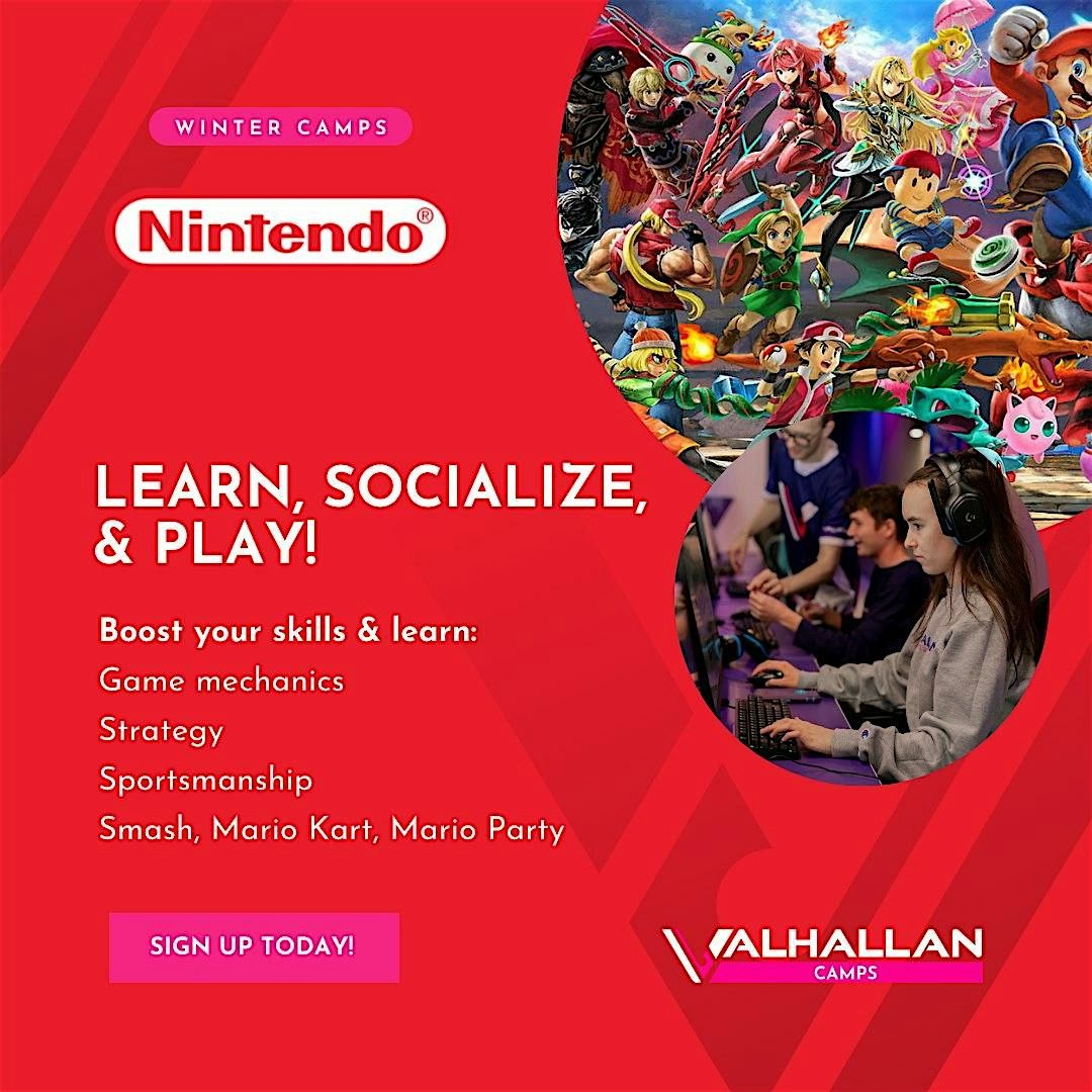 Come join us at Valhallan Esports Training for a week of fun and learning. Kids will immerse themselves in the fun-filled world of Nintendo, playing games like the brand new Kirby Air Riders, Mario Kart World, Super Smash Bros. Ultimate, and Mario Party Jamboree. Campers will dive deep into a variety of games, learning to have a more strategic approach to playing their favorite games. Alongside hands-on gameplay, participants will also receive coaching techniques, enabling them to analyze and improve their own performance while learning how to communicate effectively and be a part of a team. Through teamwork and strategy-building sessions, kids will develop their competitive edge, enhancing their leadership, communication, and critical thinking skills.