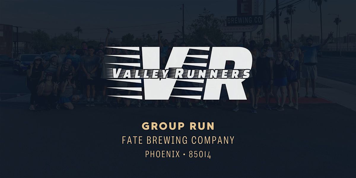 Join Valley Runners for a FREE casual group run at Fate Brewery (Phoenix) on Thursday, February 19, 2026, at 6:30 PM. All paces welcome.