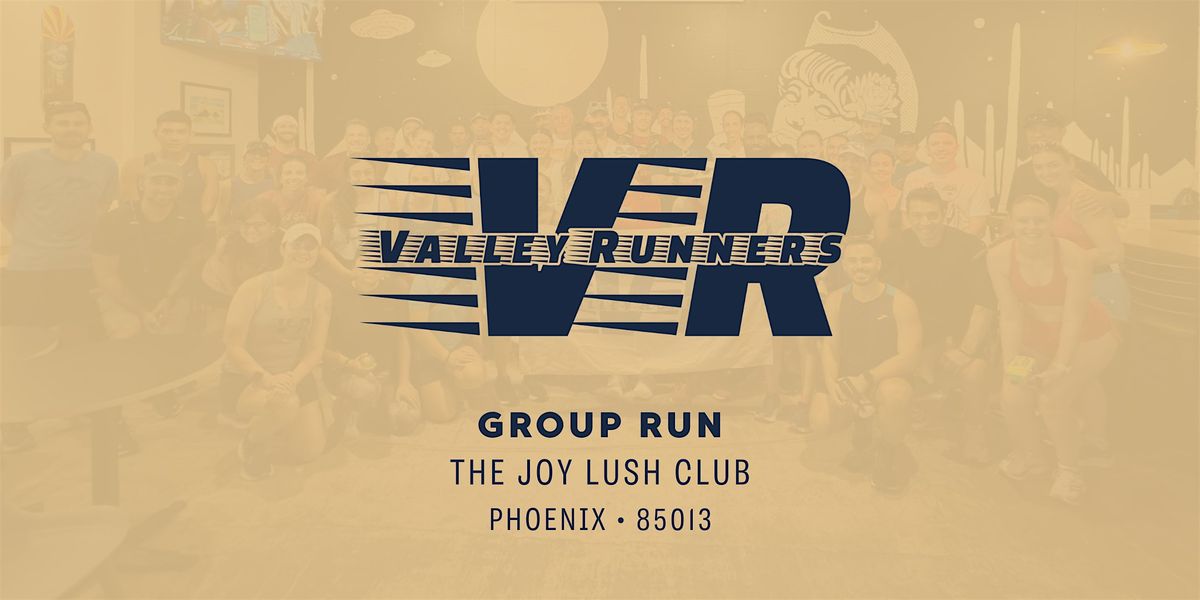 Join Valley Runners at The Joy Lush Club in Central Phoenix for a casual group run around the neighborhood/Murphy Bridle Path. All paces are welcome, whether you're a speedster or enjoy a casual jog; this run is for everyone. Best of all, it's completely FREE, and NO SIGNUP REQUIRED!