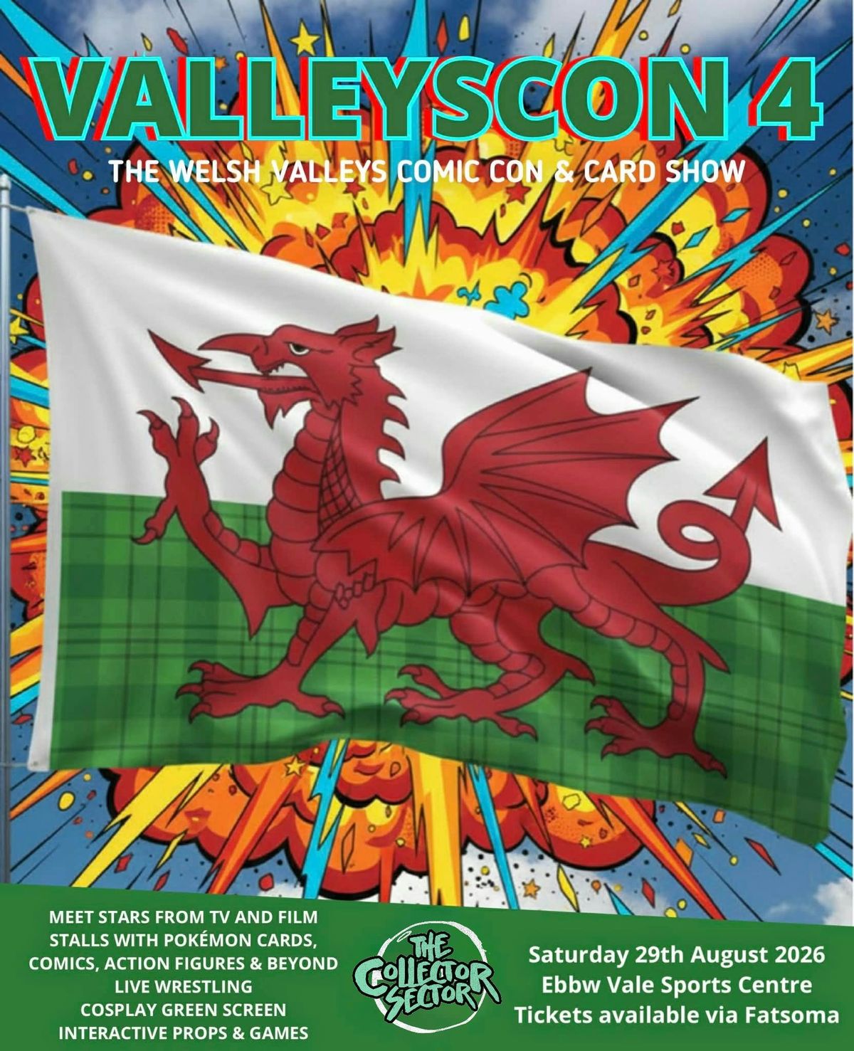 Valleyscon 4 is set for another action packed day of cosplaying, collecting & memory making!! Come and meet stars from TV and film, shop till you drop at our fantastic vendor market which will have Pokémon cards, comics, action figures plus so much more!! We'll have live wrestling, amazing cars parked outside and interactive props for photo ops! This is not an event ran by a massive cooperation, its an event ran by people from the Valleys, to shine a light on what is a gorgeous town with even better people living in it and the surrounding areas! Lets do this Valleyscon!! 🏴🏴🏴🏴Disclaimer: