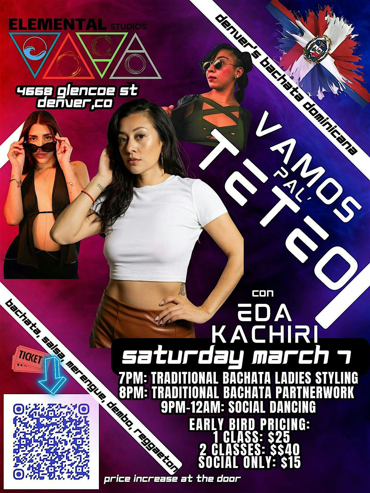 Mile high city welcomes Eda Kachiri back to Denver! Bringing you 2 amazing classes, followed by a night of dancing 💃 to the best salsa, bachata, merengue, and reggaeton!! 🎶