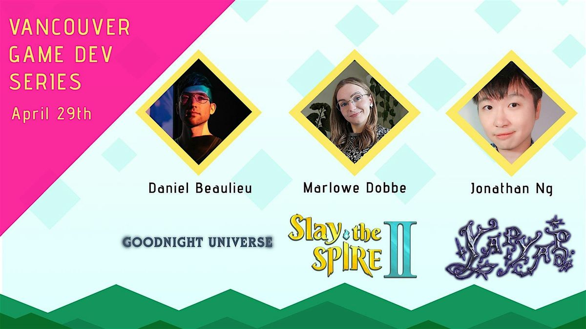 We have an awesome cast for this month's VGDS! With developers of Slay the Spire 2, YAPYAP and Goodnight Universe. Hope to see you at VFS on April 29th - First talk starts at 6pm.