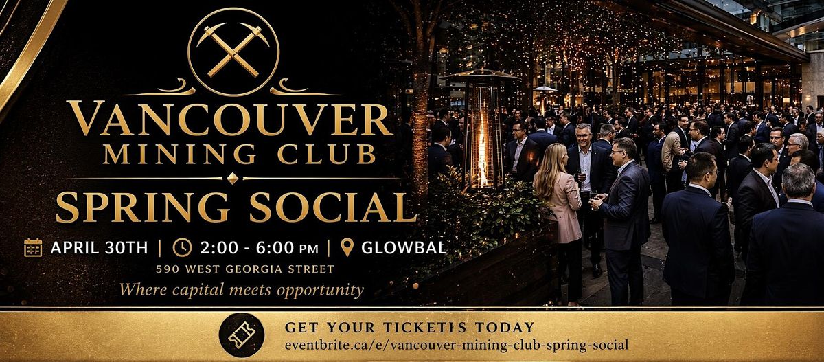 Join us for the Vancouver Mining Club Spring Social on April 30th from 2:00–6:00 PM on the Glowbal patio.