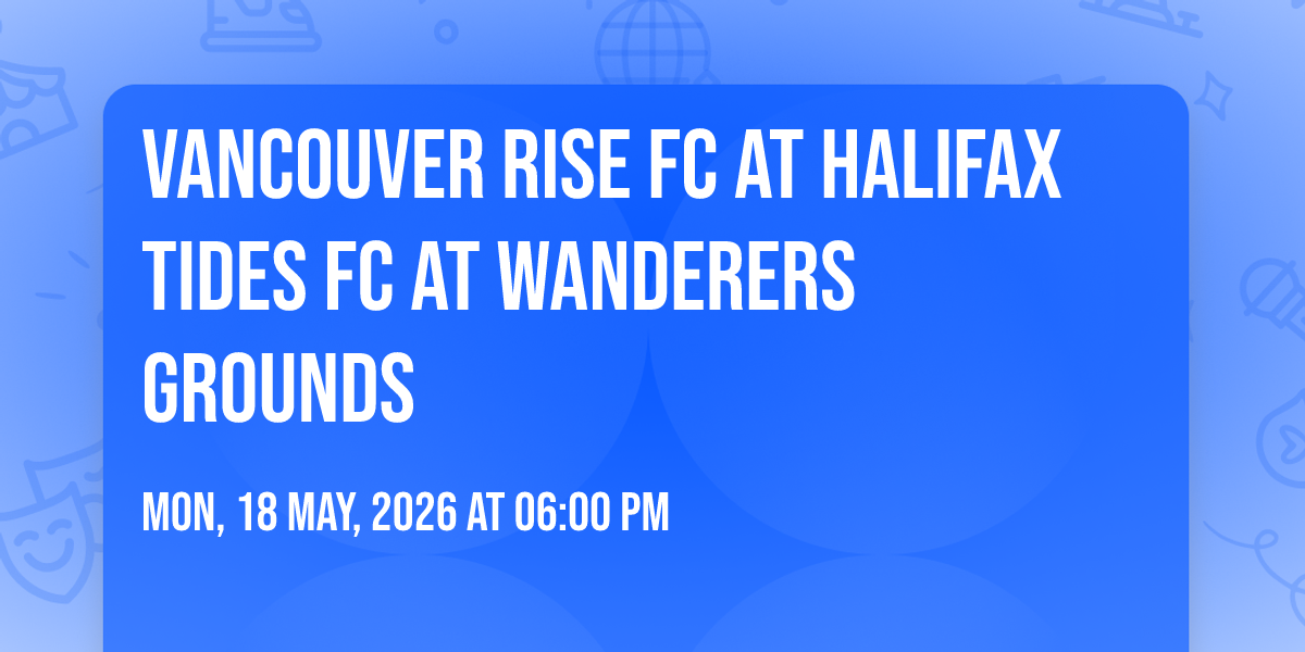 ✨ Experience the magic of Vancouver Rise FC at Halifax Tides FC at Wanderers Grounds, where moments become memories that last a lifetime! 🏛️ The iconic Wanderers Grounds in Halifax, NS sets the perfect stage for an unforgettable celebration on May 18th, 2026 at 06:00 PM. 🌟 It's been a curated experience that brings together the best of entertainment and innovation, creating an atmosphere of wonder and excitement. From the moment you arrive, you'll be immersed in a world where the ordinary transforms into the extraordinary. 🎊 Book early to secure your place in what promises to be an event that will be talked about for years to come!