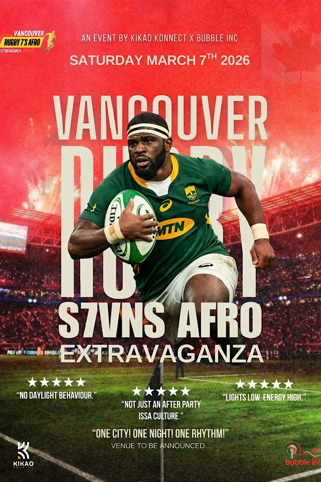 This is the ultimate after party for Rugby lovers bringing out the best of Afro Beat, with the best Afro Beat Djs in Canada