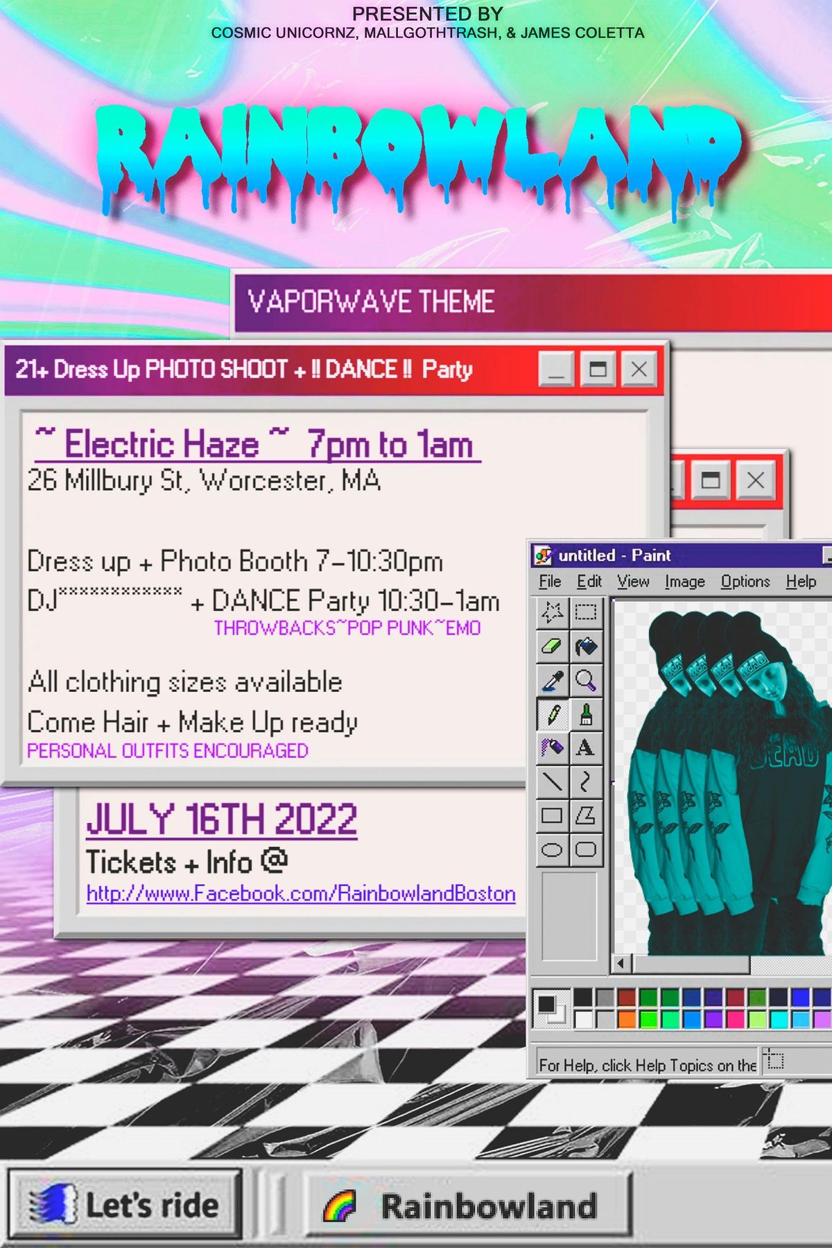 Join us on Saturday, July 16th, 2022 for "RAINBOWLAND" our PHOTO SHOOT PARTY presented by Cosmic Unicornz, Mallgothtrash and James Coletta.