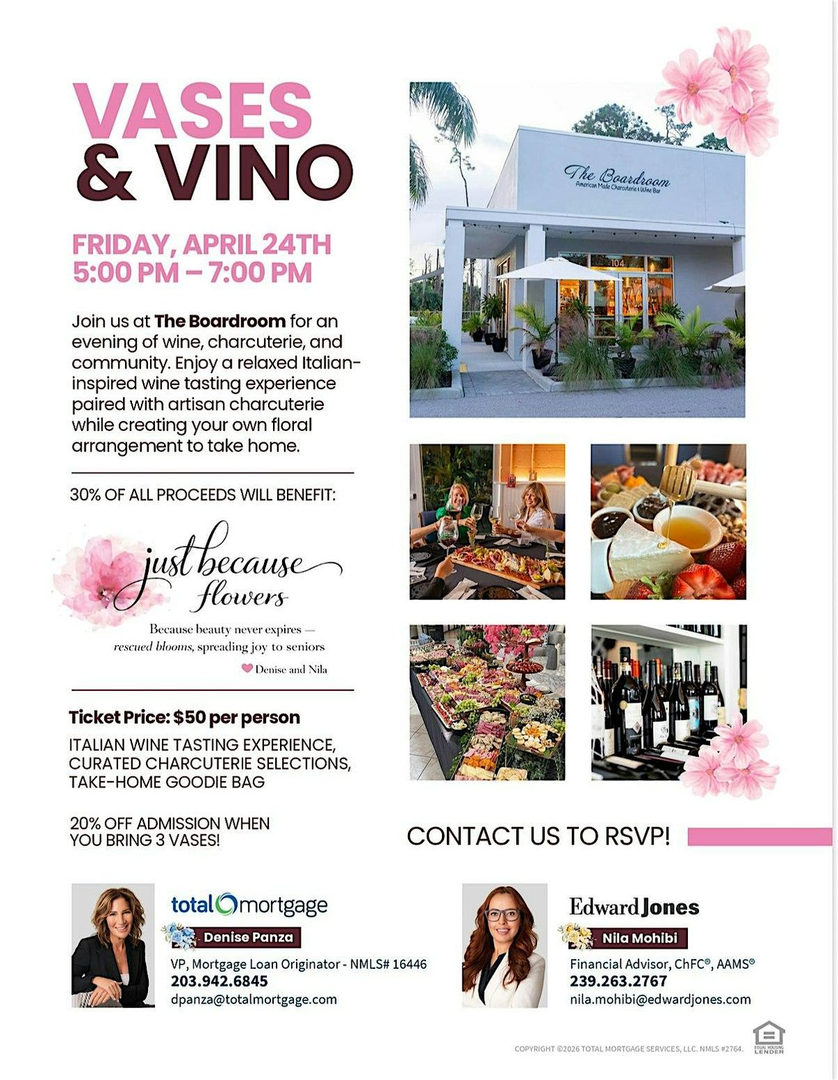 This event is hosted in partnership with Denise Panza and Nila Mohibi, with a portion of proceeds supporting a meaningful local cause.