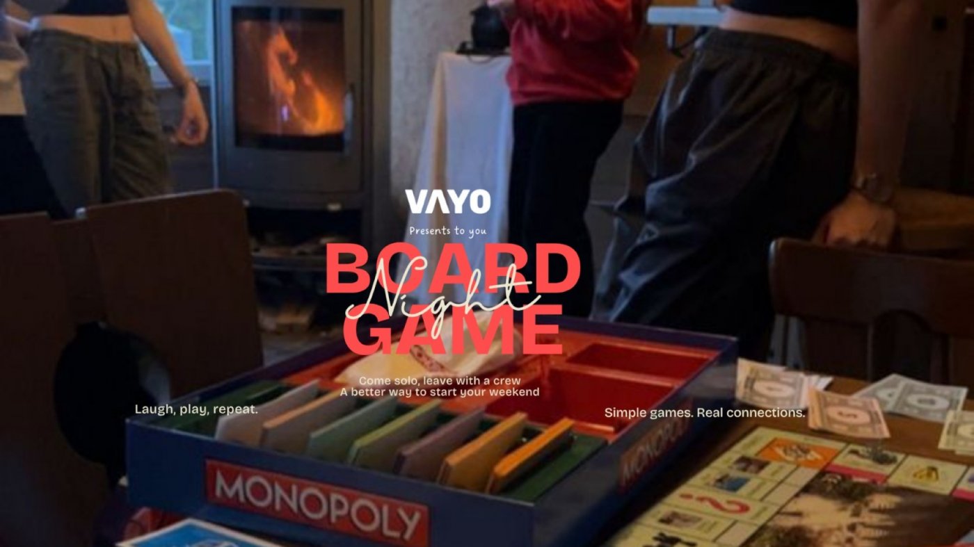 Step into a relaxed, high-energy evening designed for fun, connection, and a little friendly competition. Board Games Night ft. VAYO brings together a curated mix of easy-to-learn games and strategy favorites, creating the perfect setting to unwind and meet like-minded people.