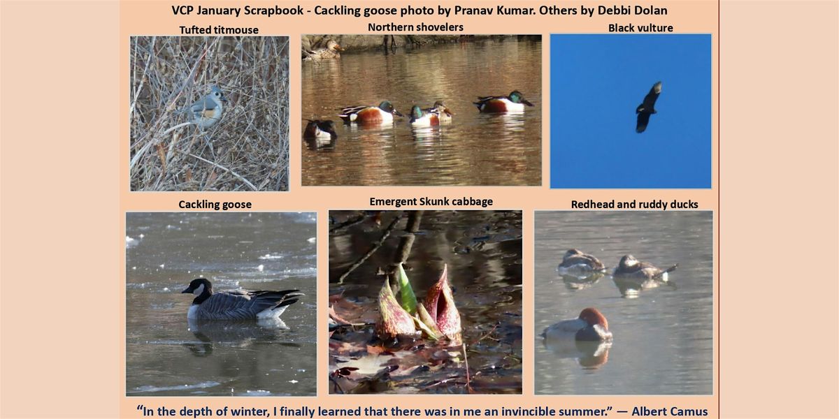 Sunday, January 11 meets at the Nature Center at 10 a.m. for a walk in Tibbett Meadow, along the Mill Pond, and marsh.