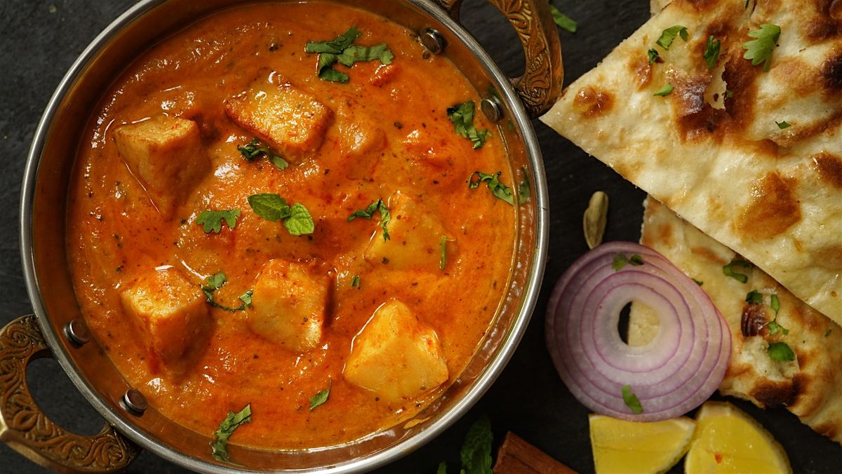 Vegan Paneer (Tofu) Makhani curry and Jeera rice while you watch, learn, and enjoy the experience — plus sip on comforting vegan chai throughout the class.
