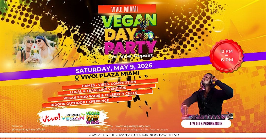 The Vegan Day Party is taking over VIVO! Plaza Miami on May 9th from 12:00 PM – 6:00 PM, and we are rewriting the script on plant-based culture. This isn't just a festival; it’s a high-energy takeover featuring elite food, live competition, and an atmosphere the city has never seen at this level.