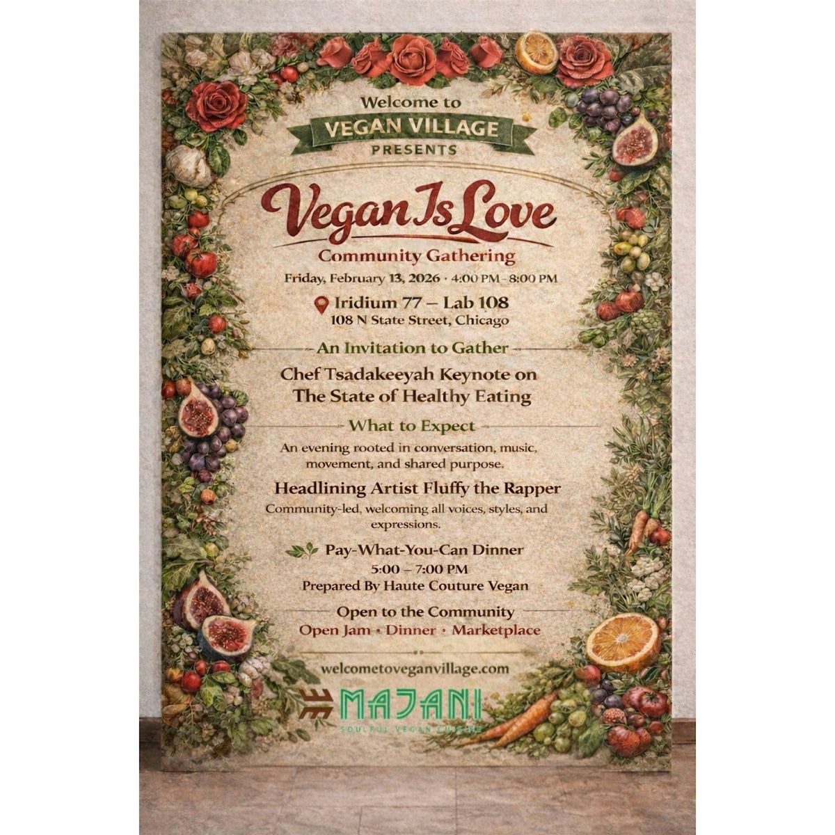 ⭐⭐⭐Vegan Is Love with Chef Tsadakeeyah 🌟 Chef Khalilah & “What Is Love” EP Release Party by Fluffy the RapperFebruary 13, 2026 🎼 A Call for Vegan Chefs, Chicks, and Creatives Chicago, IL 🎉 In the wake of several vegan business closures across Chicago in 2025, the Vegan Village is proud to announce a community-centered revival event: Vegan Is Love with both Chefs, paired with the “What Is Love” EP Release Party by Fluffy the Rapper, brings together food, music, wellness, and creative expression in one shared space. Chef Tsadakeeyah & Chef Khalilah will share their culinary wisdom and leadership with the next generation of vegan chefs. Chef Tsadakeeyah’s keynote address, “The State of Healthy Eating and Vegan Businesses in Chicago,” will outline a forward looking vision for Vegan Village, a mixed use food, wellness, and residential hub currently in development and fundraising.The evening will formally open with a blessing by Lady Majani at 5:00 PM, followed by a live performance by Fluffy the Rapper, and will conclude with Chef Tsadakeeyah’s keynote at 7:00 PM.At the heart of the evening, Fluffy the Rapper will celebrate the release of her new EP, What Is Love, bringing music, storytelling, and reflection into the space. The EP explores love as action: love for self, love for community, and love expressed through health, creativity, and shared responsibility.
