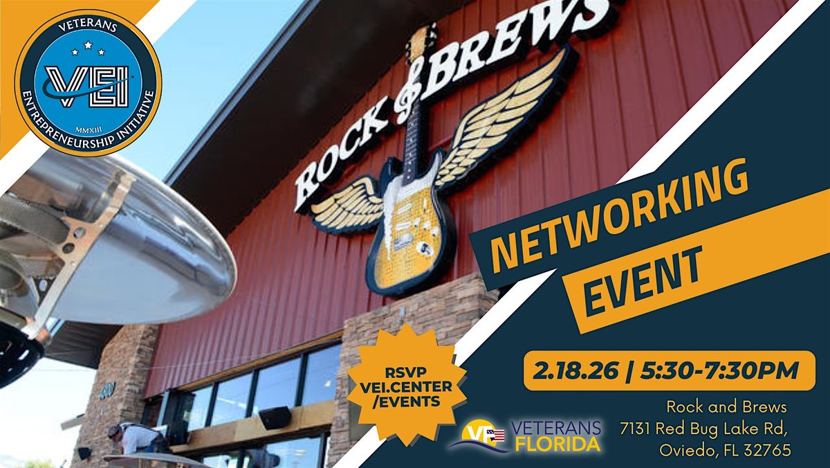 Join us for the VEI Business and Brews event, where veteran entrepreneurs come together for an evening of networking, great food, and rock and roll vibes. Held at Rock and Brews Oviedo, this event is the perfect opportunity to connect with like-minded individuals, build valuable business relationships, and enjoy complimentary refreshments.