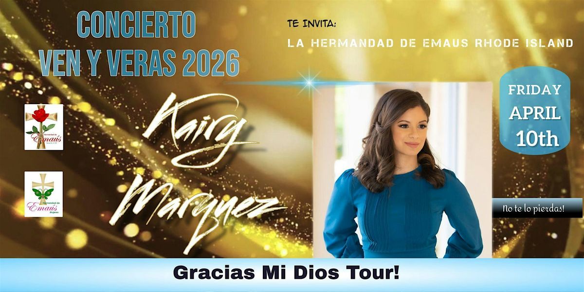 NOCHE DE ALABANZAS Y TESTIMONIO: El proximo Viernes 10 de Abril a partir de las 7:00 pm se llevará a cabo en el auditorio diocesano McVinney, el concierto "Ven y Veras 2025", con la cantautora católica Kairy Marquez. El costo de la donación es $35 y $45 para beneficio de los retiros de hombres y mujeres de la Hermandad de Emaus Rhode Island.