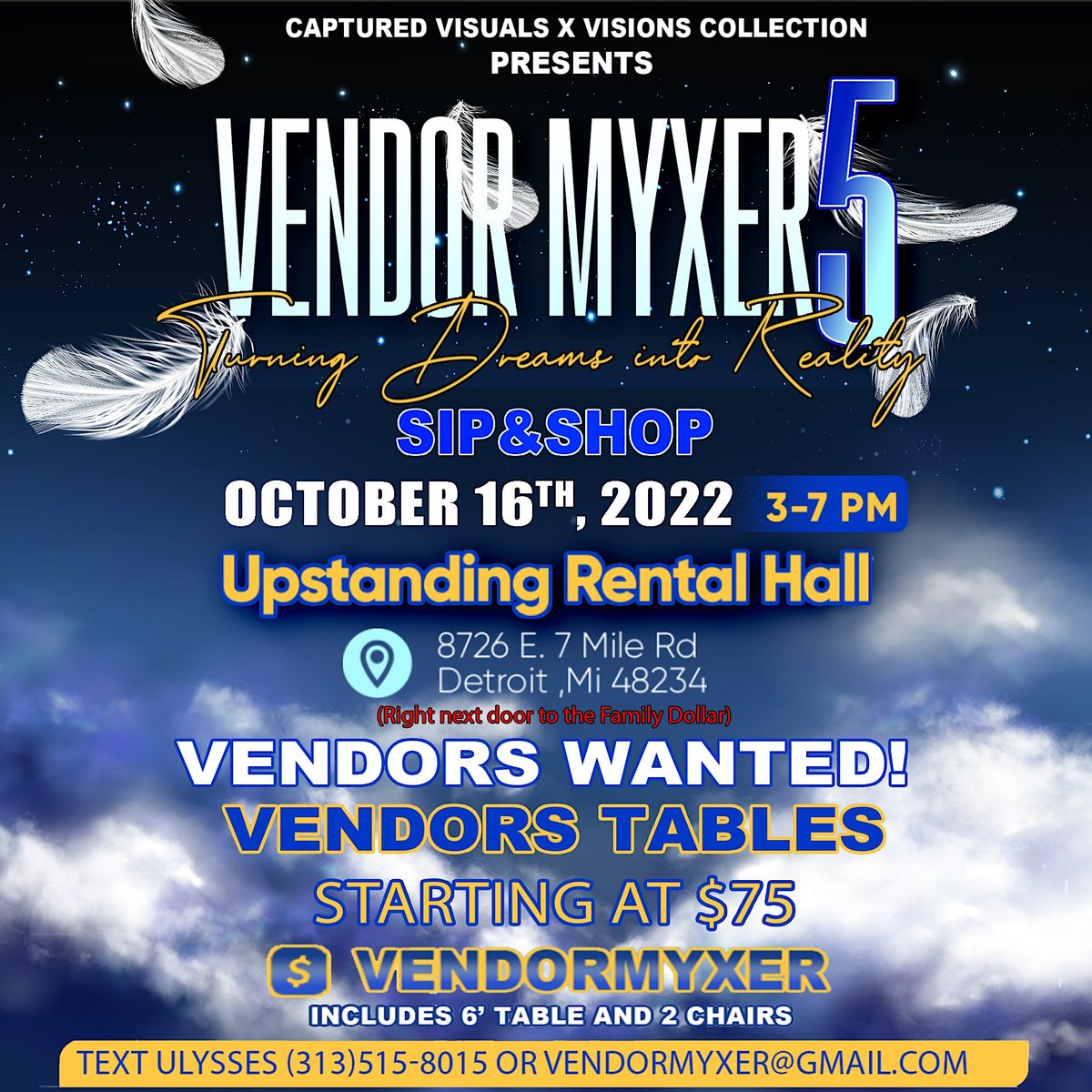 Vendor Myxer is one of our biggest event of the year. We're on our 5th one so this one will be bigger. All Entrepreneur are welcomeAbout this Event