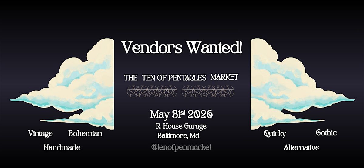 We’re now accepting vendors for the Ten of Pentacles Market! Join us for a unique community market featuring creative, alternative, and independent artists.