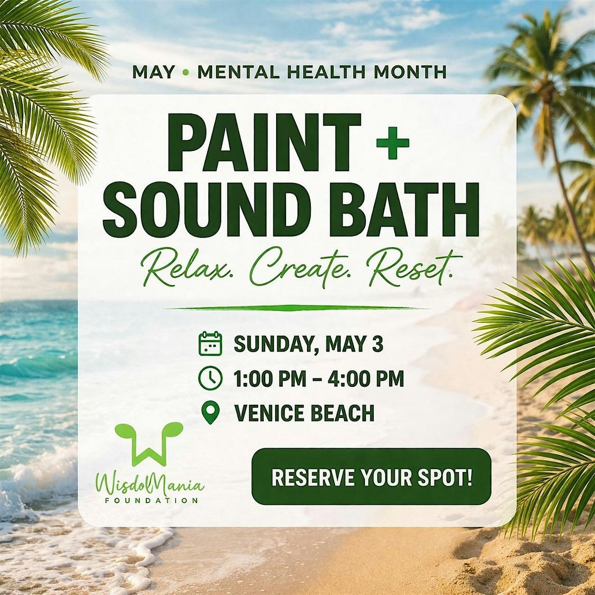 This FREE community event is made possible by Wisdomania Foundation, a local LA non-profit dedicated to blending the arts and self-care to create meaningful, restorative experiences.