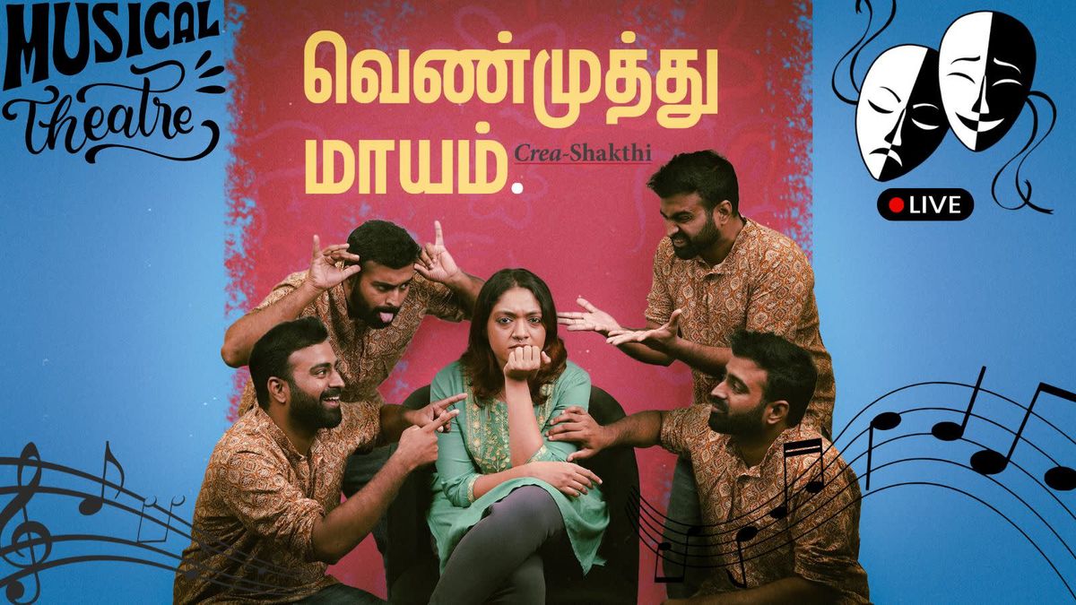 Set in the rhythm of contemporary urban Chennai, this Tamil musical dramedy follows Ram and Lakshmi— a young, seemingly progressive couple balancing personal ambition, intimacy, and the invisible weight of expectation. Their days are filled with corny corporate meetings, comical arguments, Instagram reels filled with hypothetical questions, nosy family calls, and half-finished dreams, all the while with them finding love in each other. As they prepare to take their next step in their marriage, which was once a destination, now feels like a starting line they’re unsure how to cross as a couple.And just when joy seems a forever, doubt enters and casts a cloud over their carefully planned future all thanks to the arrival of A "Venmuthu" (A pearl like dot in tamil) - What is this Dot? Come find out!Routines begin to fracture, small disagreements grow louder: about money, work, boundaries, and issues they haven’t fully articulated. The city hums around them, amplifying every doubt. Musical numbers emerge from mundane moments—cleaning schedules, office pressures, overheard judgments—giving voice to thoughts they cannot say aloud. Can they figure it all out as their lives move forward? Or will they always play catch up? With themselves and everything around themVenmuthu Maayam is an original Musical Dramedy by Crea-Shakthi relatable to every person trying to start their lives in urban Indian metros with a significant other.Script:Tanvi SrivatsanDialogues: Koushik MuruganLyrics: Bhavani AMusic Direction: Mohamed Shameer AKPercussions: Vishwa BharathChorus/ Vocals: Marshal, Fathima Henna, GowthamCast: Bhavani A as Lakshmi, Koushik Murugan as RamSpl. Appearance: Janaki Sabesh, KAS, Tvisha VadhulProduction Design: Joshua Thomas , Georgie JacobDesign & Direction: Dushyanth Gunashekar