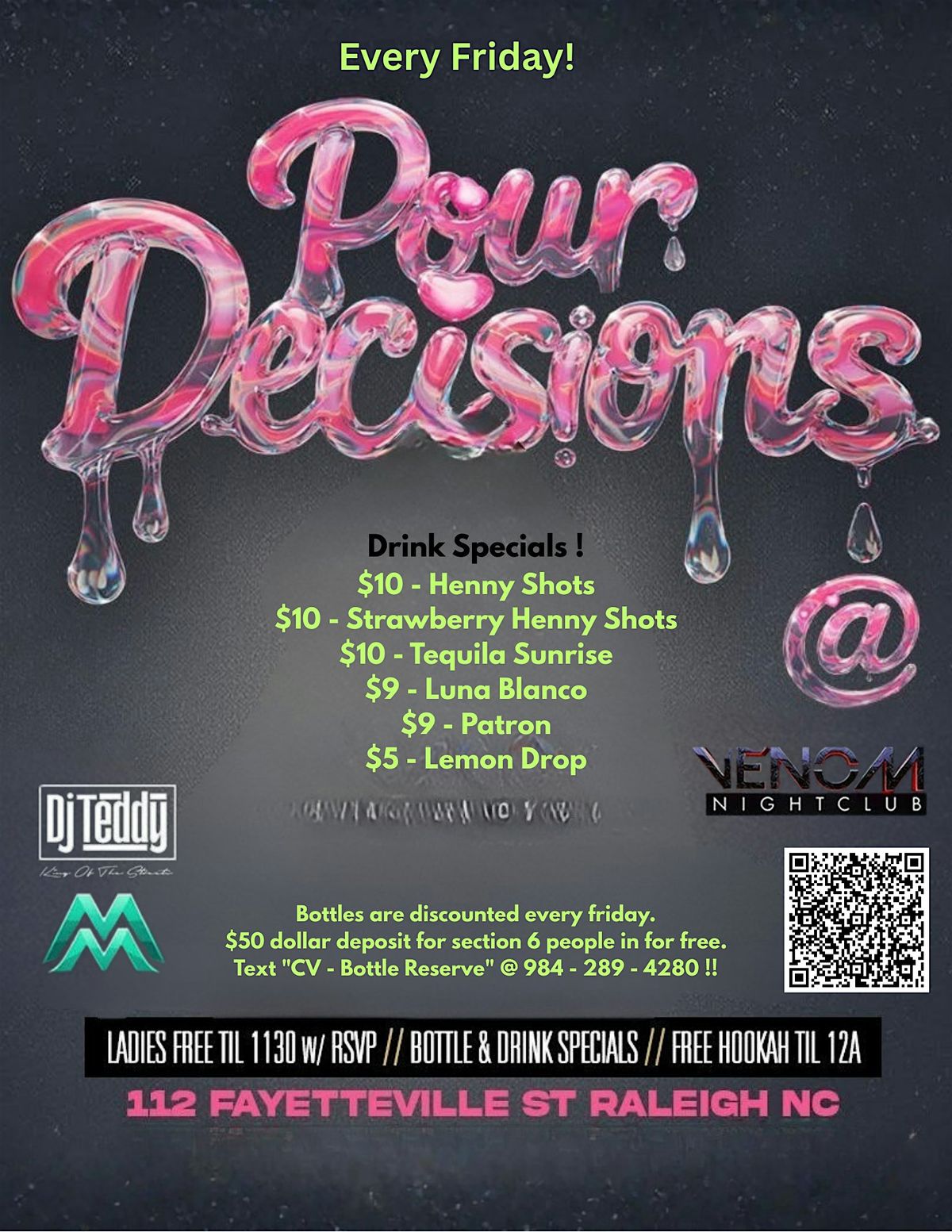 Hit up Venom Nightclub in Raleigh Downtown, free entry before 11:30 PM with QR code - let's party all night!