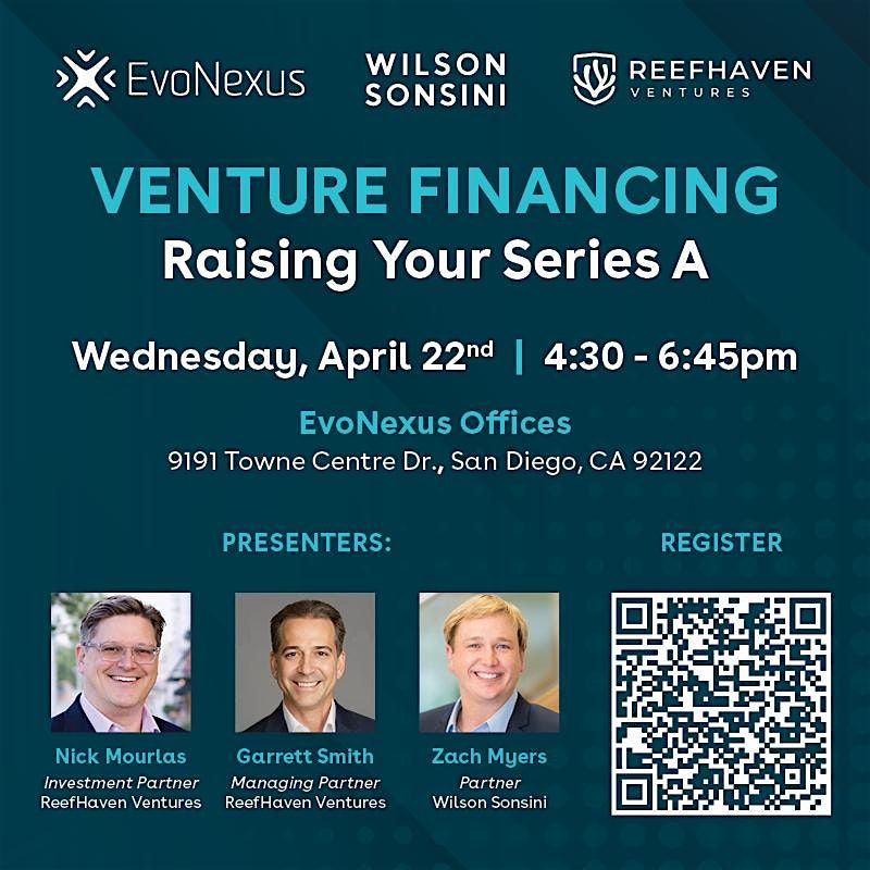 This seminar brings together top startup attorney Zachary Myers of Wilson Sonsini and investors Nick Mourlas and Garrett Smith of ReefHaven Ventures to break it all down — the legal mechanics, the investor mindset, and the practical realities of getting a Series A done. It's a rare opportunity to hear from both sides of the table in the same room, at the same time.